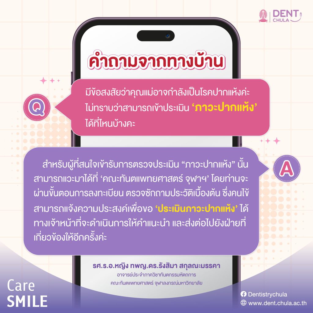 หากคุณสงสัยว่ากำลังมีภาวะปากแห้ง สามารถแวะมาที่คณะทันตแพทยศาสตร์ จุฬาฯ เพื่อขอรับการตรวจประเมินได้