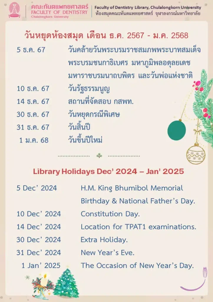 - คลินิกทันตกรรมบริการ (สำหรับนิสิตและบุคลากร)